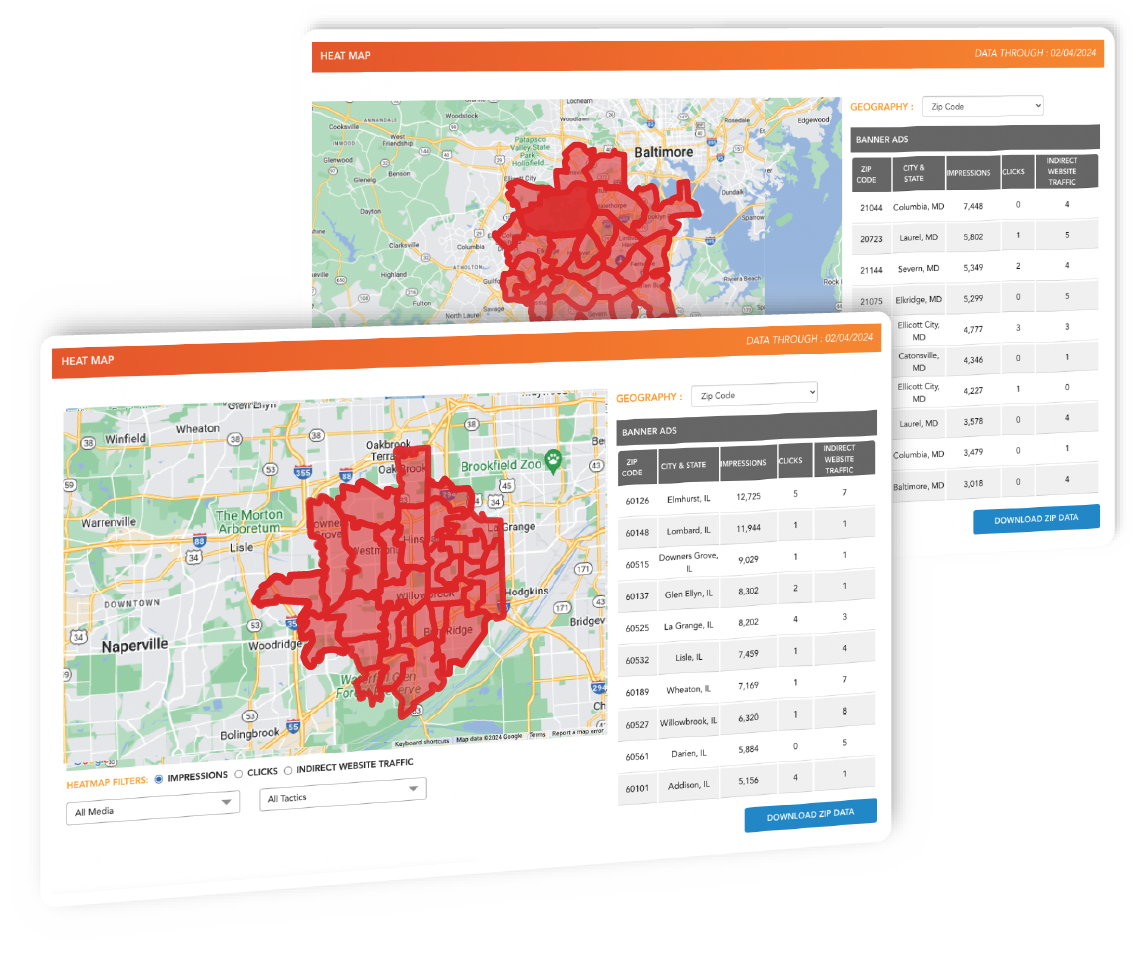 Campaigns are activated with unique zip code level targeting for each location.