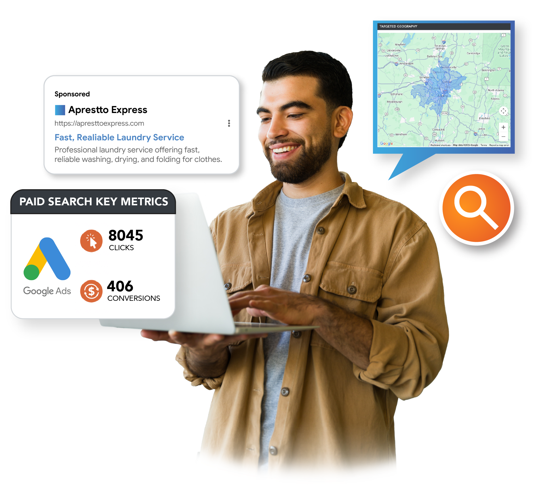 Ensure that your business appears when people in your area search on Google for the services you offer, directing them to your company. All click traffic will be directed to your business website.